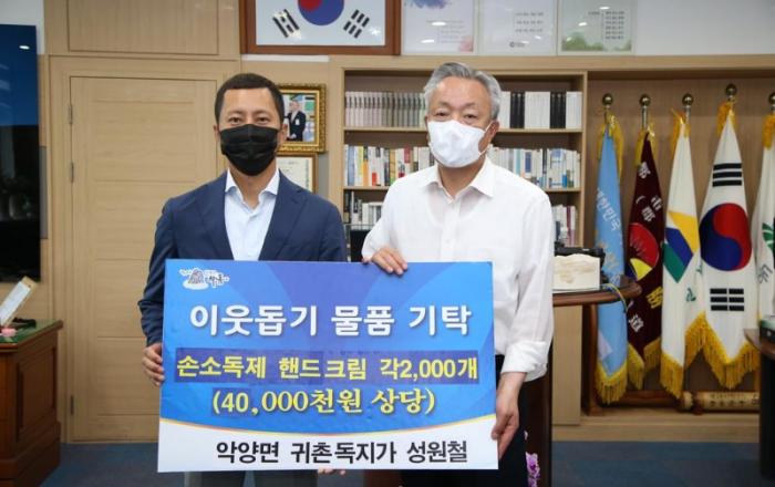 악양 귀촌 독지가, 손소독제·핸드크림 기부하동군, 4000만원 상당 각 2000개 기탁…취약계층 및 복지시설에 전달 하동군은 악양면으로 귀촌한 독지가 성원철(44)씨가 지난 7일 군수 집무실을 찾아 4000만원 상당 손소독제와 핸드크림 각 2000개를 기탁했다고 8일