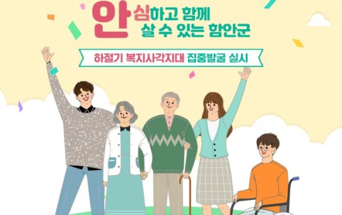 2021 함안군 하절기 복지사각지대 집중발굴 실시 함안군은 코로나19 장기화, 폭염, 폭우 등 위험요인이 증가는 여름철 대비 저소득층의 생활안정 및 돌봄 지원에 최선을 다하고자‘하절기 복지사각지대 집중발굴기간’을 운영한다고 밝혔다. 집중 발굴기간은 이달 1일부터