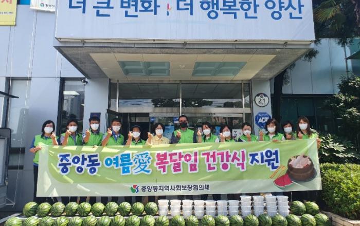 중앙동 “여름愛 복달임 건강식 드립니다” - 중앙동 지역사회보장협의체, 저소득 취약계층 삼계탕・수박 전달 -중앙동 지역사회보장협의체(공공위원장 동장 임선희, 민간위원장 나민성)는 7일 저소득 취약계층 33세대를 대상으로 “여름愛 복달임 건강식 지원”사업을 실시했다.중앙