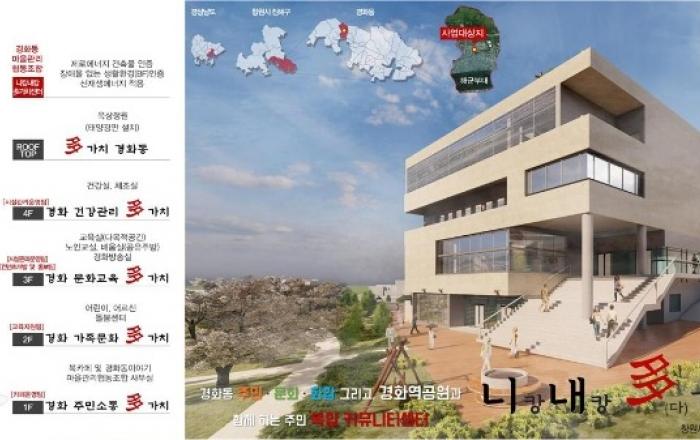 창원시, 진해구 경화주민복지센터 도시재생사업 공모 선정(경화주민복지센터 공모선정).‘니캉내캉 多 가치센터’ 국·도비 60억 확보창원시(시장 허성무)는 국토교통부가 주관한 2021년도 1차 도시재생 뉴딜사업 공모에 진해구 경화주민복지센터(가칭 ‘니캉내캉 多 가치센터’)가