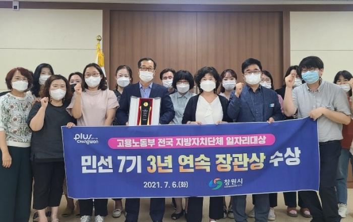창원시, 전국 지자체 일자리대상 3년 연속‘고용노동부 장관상’수상주력산업 노동자 고용안정 · 코로나19 고용충격 극복 일자리대책 우수성 공인창원시(시장 허성무) 일자리대책의 우수성이 3년 연속 전국적으로 공인 받았다.창원시는 6일 대전 호텔ICC 그랜드볼룸에서 열린 전