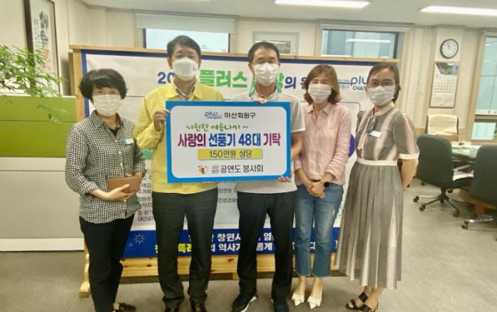 사단법인 공연도봉사회, 저소득가구에 사랑의 선풍기 기탁- 시원한 여름 보내세요 ! -창원시 마산회원구(구청장 박주야)는 6일 공연도봉사회(대표 정송권)에서 무더위에 취약한 가구에 전해달라며 선풍기 48대(150만원 상당)를 기탁 했다고 밝혔다.정송권 대표는“우리 지역주