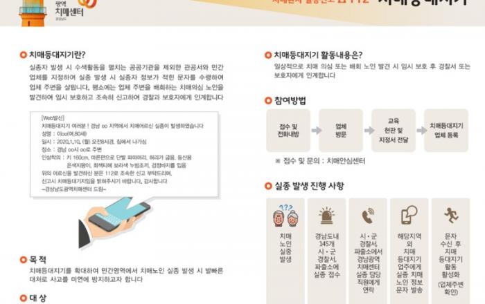함양군보건소 치매안심센터에서는 「치매등대지기」 를 모집 합니다.치매노인 실종 예방사업의 일원으로 지역사회 사전 안전망 구축을 위한 「치매등대지기」 모집에 적극적 참여 부탁드립니다.■ 신청기간 : 2021. 7월. ~ 12월. (연중 상시)■ 신청대상 : 공공기관 및 민