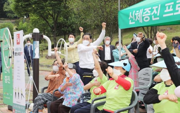창원시, 반송공원에 ‘도내 1호 어르신 여가그가 놀이터’ 개소프로그램 중심 어르신 전용 놀이터 설치창원시(시장 허성무)는 30일 오전 10시30분 성산구 반송공원에서 사회복지법인 희연(대표이사 박희숙) 주관으로 도내 1호 ‘어르신 여가그가 놀이터’ 개소식을 개최했다.어