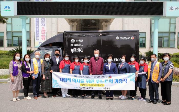 국제라이온스협회 355-E(경남서부)지구 하동군에 푸드트럭 기증‹›사회적 약자들에게 봉사의 마음을 전해 국제라이온스협회 355-E(경남서부)지구 허경순 총재는 지구 연차대회를 앞두고 LCIF(국제라이온스재단)지원 봉사사업으로 푸드트럭을 제작해 지난 25일 하동군을