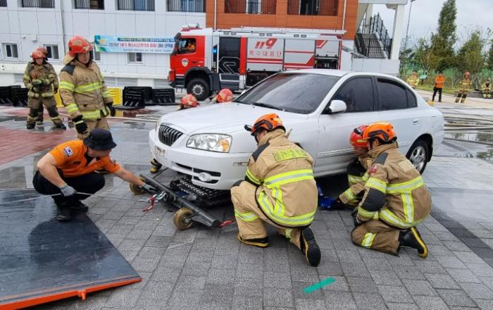 경남119특수대응단, 전기차 화재 대응 역량강화를 위한 권역별 합동훈련 실시 - 경남119특수대응단 주관, 도내 18개 소방서 구조대원과 전기차 화재 합동훈련 실시- 실전형 훈련으로 신속·안전한 통합대응 능력 제고 경상남도 소방본부(본부장 이동원)는 9월 22일부터 2