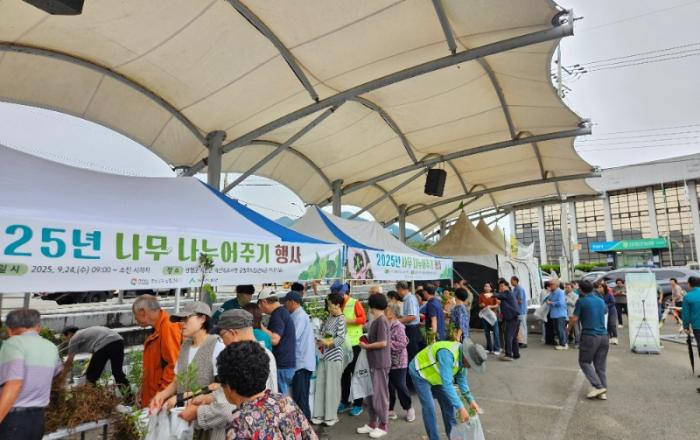 산청 산불 피해지 복원을 위한 '나무 나눠주기' 행사 개최 - 24일, 산청군 시천면 덕산약초시장에서 민음나무 등 1,400여 본 무료 배부- 산림 복원과 함께 지역주민들에게 용기와 희망 전해- 오는 26일, 산청군 산청읍에서도 추가 개최 예정 경상남도(도지사 박완수)