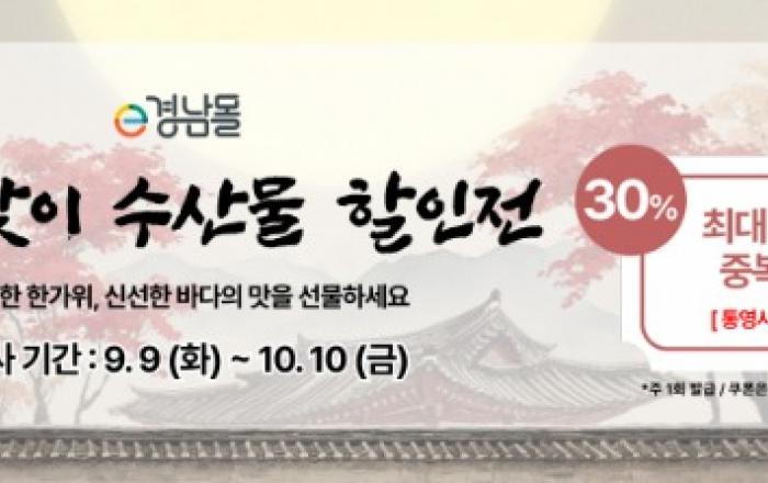 e경남몰 추석 기획전, 추석 전 마지막 할인 기회! - 9월 8일 시작된 추석 기획전, 매주 할인쿠폰 조기 소진- 추석 연휴 전 마지막 할인 기회, 전 상품 25% 수산물 30% 할인 혜택- 항노화 기획전도 동시 진행, 건강 선물도 합리적 가격에 가능 경상남도는 e경남