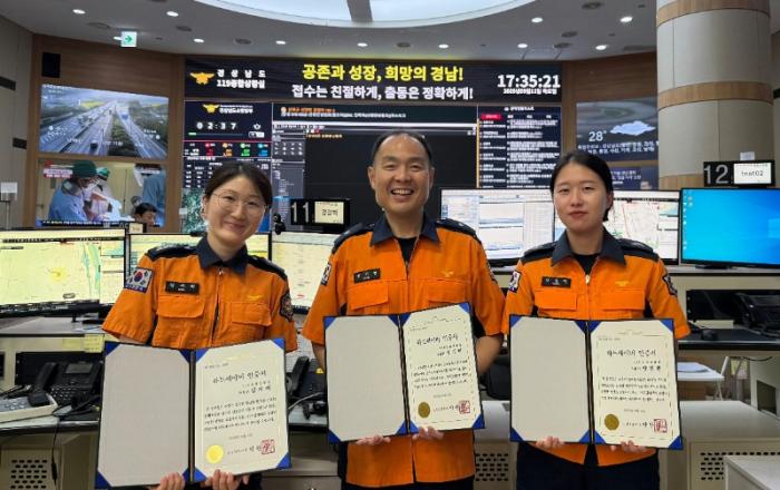 경남소방본부, 119종합상황실 근무자 5명에하트세이버 인증서 수여- “전화기 너머 생명을 살리다” 경남소방본부 하트세이버 인증 수여- 구급상황관리센터, 신속한 판단과 응급처치 안내로 환자 생존 기여 경상남도 소방본부(본부장 이동원)는 16일 위급 상황에서 침착하게 대응