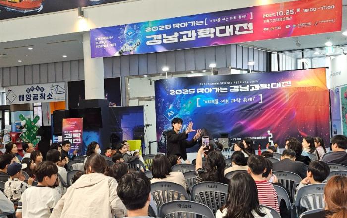 거제에서 두 번째 ‘찾아가는 경남과학대전’ 개최 - 25일 거제조선해양문화관, 학생·가족 등 300여 명 인공지능·로봇 매직쇼 등 관람- 휴머노이드․4족보행 로봇과 함께하는 2025 경남과학대전 홍보 경상남도(도지사 박완수)는 25일(토) 거제조선해양문화관에서 두 번째