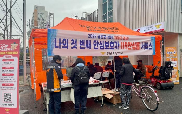 ‘누구나 쉽게 119안심콜 등록, 지금 신청하세요’…경남소방본부 홍보 캠페인 펼쳐 - 김해 거북공원·외동전통시장서 찾아가는 119안심콜 가입 지원- 사전 정보등록으로 맞춤형 응급처치·보호자 문자알림까지 연계 경상남도 소방본부는 24일 경상남도 소방본부와 김해동부소방서가