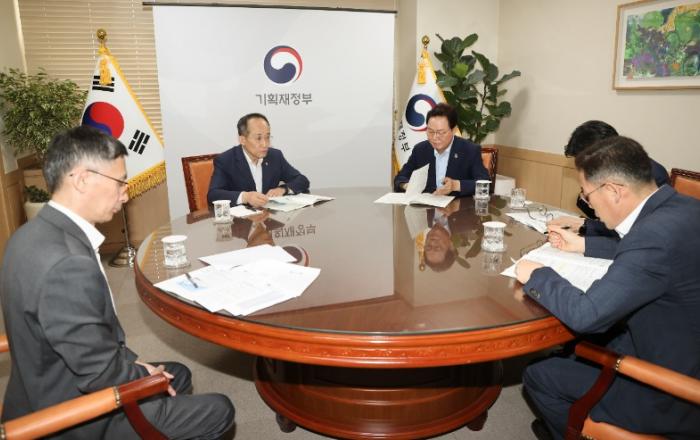경남도지사, 경제부총리에 역점 국비사업 건의 - 20일 도지사, 경제부지사 등 경제부총리와 국비예산 간담회 가져- 바다정거장, 글로벌 융복합 콘텐츠산업타운 조성 등 7건, 784억 원 건의 박완수 경상남도지사는 20일 오전 정부서울청사에서 열린 ‘2024년도 국비예산