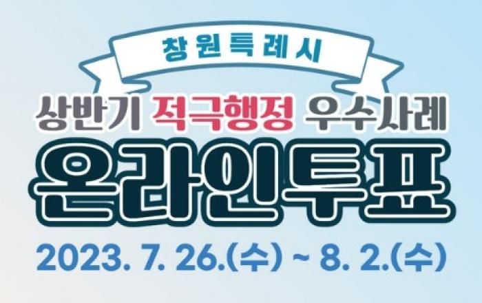 창원특례시, 상반기 적극행정 우수사례 온라인투표 실시공유형 플러스 누비자 등 우수사례 7건 온라인투표 후보 선정창원특례시(시장 홍남표)는 7월 26일부터 8월 1일까지 2023년 상반기 적극행정 우수사례를 선발하기 위해 창원시청 홈페이지에서 온라인투표를 진행한다고 밝혔