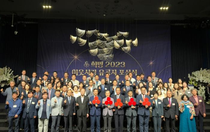 경남도, ‘공헌자 포상’으로 사회공헌문화 확산 첫걸음 - 28일 ‘희망 2023 이웃사랑 유공자 포상식’ 열려…민간인 등 20명 도지사 표창 수여- 이웃사랑을 실천해 온 ㈜마창대교, 보담사, 의령 보드미 등 수상- 최 부지사, “나눔문화 확산 위해 사회공헌인증 등 공헌