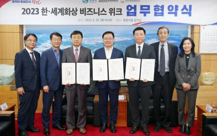 창원특례시, 2023 한․세계화상 비즈니스 위크 성공 개최 업무협약 체결(사)한국중화총상회-(사)한국부울경중화총상회와 공동 노력에 합의창원특례시(시장 홍남표)는 29일 오후 4시 접견실에서 국내 화교단체인 (사)한국중화총상회(회장 송국평), (사)한국부울경중화총상회(회