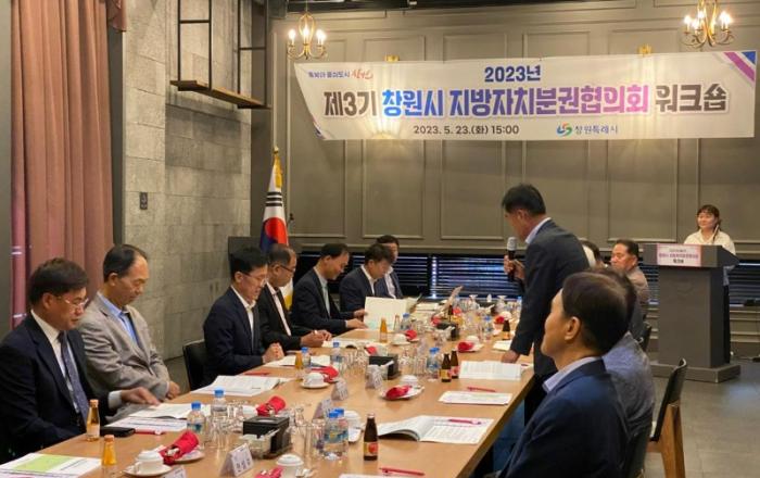 창원특례시, 지방자치분권협의회 워크숍 개최제3기 창원시 지방자치분권협의회 위원 역량 강화 및 자치권 향상 목적창원특례시(시장 홍남표)는 23일 오후 3시 인터내셔널호텔에서 창원특례시 제3기 지방자치분권협의회 위원들을 대상으로 ‘2023년 창원시 지방자치분권협의회 워크숍