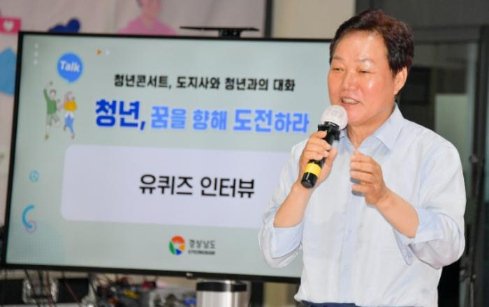 경남도, ‘청년콘서트, 도지사와 청년과의 대화’ 개최 - 22일 경남 콘텐츠코리아랩에서 토크콘서트와 경남청년 교류회 진행- 경남청년정책네트워크, 청년창업가, 청년단체 등 100여 명 참석- 어려움 겪고 있는 청년에게 전하고 싶은 꿈과 도전 응원 메시지 전달 경남도(도지