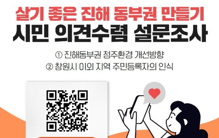 창원특례시 “살기 좋은 진해 동부권 위해 여러분의 의견 들려주세요”창원특례시(시장 홍남표)는 23일부터 6월 16일까지 ‘살기 좋은 진해 동부권 만들기’ 관련 의견 수렴 설문조사를 실시하고 있다고 25일 밝혔다.본 설문조사는 정보무늬(QR코드)를 활용해 진행되며, 생활