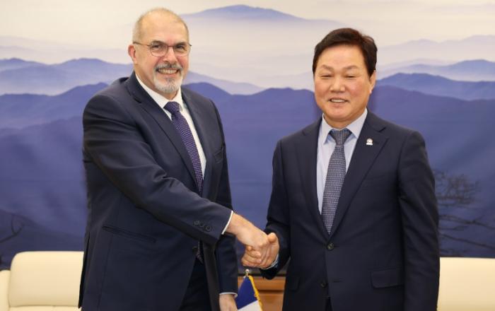 박완수 도지사, 필립 르포르 주한프랑스대사 접견 - 17일 도청에서 프랑스와 우주항공산업분야 협력 및 교류 추진 뜻 모아- 우주항공, 방산 등 경남의 주력산업과 연계한 긴밀한 협력관계 구축- 르포르대사, 도지사 6월 프랑스 방문 시 기관 간 우호교류 지원 약속 박완수