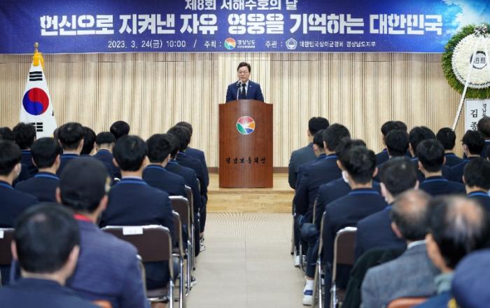 ‘호국의 별, 서해수호 55용사’들의 희생을 기리다 - 24일 경남보훈회관 ‘제8회 서해수호의 날 기념식’ 개최…200여 명 참석- ‘헌신으로 지켜낸 자유, 영웅을 기억하는 대한민국’ 주제로 진행- 박 도지사, “나라 위해 목숨 바친 호국영웅 알리고 안보의식 강화에 노