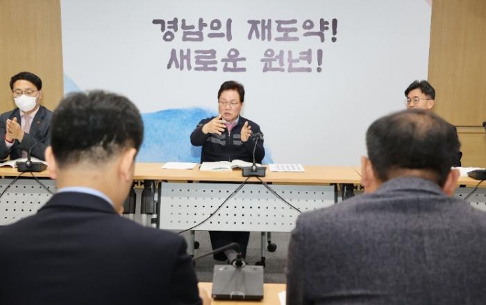경남도, 2024년도 국비 신규사업 발굴보고회 개최 - 민선8기 역점사업 본격 추진을 위한 국비사업 142건 신규 발굴- 국정과제, 민선8기 공약 등 도정 역점사업 국비 확보 추진- 목표액 올해보다 10% 늘어난 9조 6천억 원으로 상향 설정 경남도는 22일 오전 도청