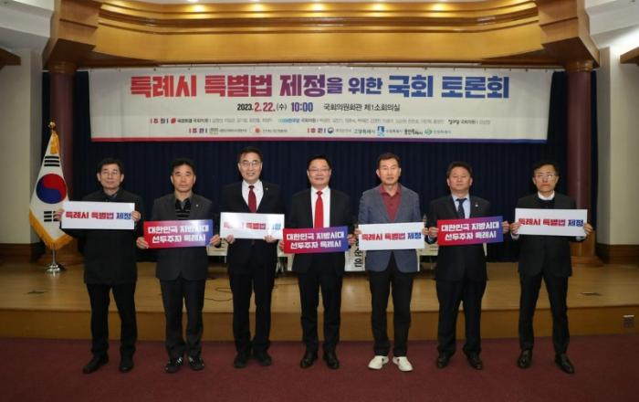 창원 등 4개 특례시,‘특례시 특별법 제정’ 한목소리특례시 특별법 제정 국회 토론회 개최홍남표 창원특례시장 참석 ‘특별법 제정 지원 요청’재정 확보, 포괄적 권한 이양을 위해 특별법 필요홍남표 창원특례시장은 22일 국회 의원회관에서 열린 ‘특례시 특별법 제정을 위한 국