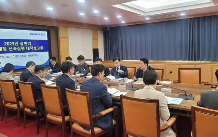 창원특례시, 신속한 재정투입으로 지역경제에 훈풍 불어넣어2023년 지방재정 신속집행 대책보고회 개최창원특례시는 10일 하종목 제1부시장 주재로 상반기 재정집행을 속도감 있게 추진하기 위한 ‘2023년 상반기 지방재정 신속집행 대책보고회’를 개최했다.시는 이날 보고회에서