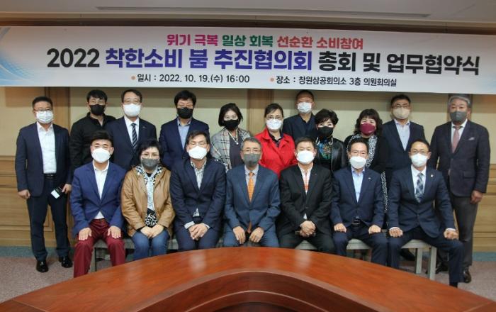 창원특례시, 즐거운 소비 2022 창원 e페스타 향한 첫걸음창원시와 창원상공회의소 착한소비붐추진협의회 업무협약 체결창원특례시(시장 홍남표)와 창원상공회의소 착한소비붐추진협의회(회장 구자천)는 창원상공회의소에서 「소비촉진과 지역경제 활성화를 위한 업무협약」을 체결했다고