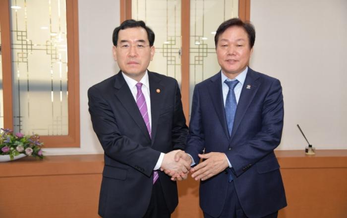 박완수 도지사, 환경부장관 만나중동부경남 안전한 물 공급 논의 - 박완수 도지사, 24일 도청에서 한화진 환경부장관 접견- 민관협의체 조속히 구성해 취수지역 주민 소통과 피해 대책 마련 요청- 지역맞춤형 통합하천사업 선정 등 도정 현안사업 건의 박완수 경남도지사가 24