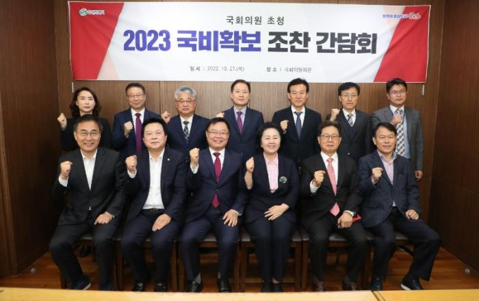 홍남표 창원특례시장-지역 국회의원, 2023년도 국비 확보 위해‘맞손’27일 홍남표 시장, 지역 국회의원 초청 조찬 간담회 열어 국비 확보 대책 논의홍남표 창원특례시장은 시정 주요현안 논의와 2023년도 국비예산 확보에 총력을 기울이기 위해 27일 국회에서 지역 국회의