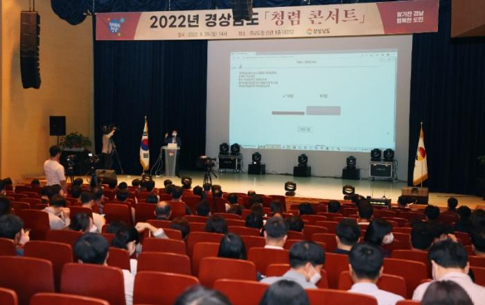 박완수 도지사, ‘청렴 라이브 콘서트’ 참여 - 26일 오후 도청 신관 대강당에서 이색 청렴 행사 열어- 기존 교육방식 탈피해 샌드아트, 아카펠라 공연 연계로 재미 더해- 공직자 이해충돌제도와 행동강령준수에 대한 공직사회 공감대 확산 경남도는 26일 오후 도청 신관 대