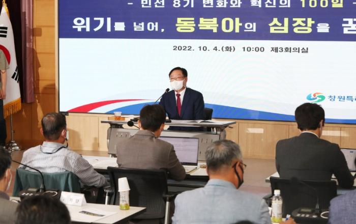 홍남표 창원특례시장 취임 100일… 과학적 혁신전략으로‘동북아 중심도시’ 밑그림 그렸다R&D・인재양성 융합형 신개념 방산・원전특화산단(국가산단 2.0)을 창원 30년 먹거리로 설정- 원전생태계 복원, 방산・스마트물류산업 투자유치 확대로 경제회복에 박차- 만성적 재정압박