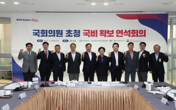 창원특례시 8개 기관-지역 국회의원, 내년 국비확보 위해 원팀 선언- 홍남표 시장, 취임 후 첫 연석회의 국회에서 열어 국비 확보 대책 논의- 시, 전기연, 재료연 등 8개 공공기관, 힘 합쳐 국비 지원사업 공동 건의- 원전, 미래산업, 항만물류 등 4차 산업혁명 주도
