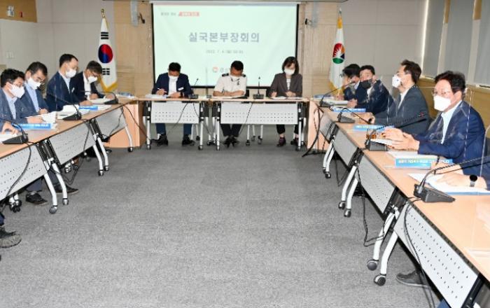 박완수 경남도지사, 취임 이후 첫 실국본부장회의 개최- 사회대통합위원회, 투자자문위원회 조속한 구성 주문- 산하기관 구조조정, 인사의 투명성 등 도정 챙기기‧‧‧원팀 강조- 4일 간부회의 주재‧‧‧회의자료 없이 간부 공무원들과 도정 현안 논의 4일 오전 도청에서 박완수