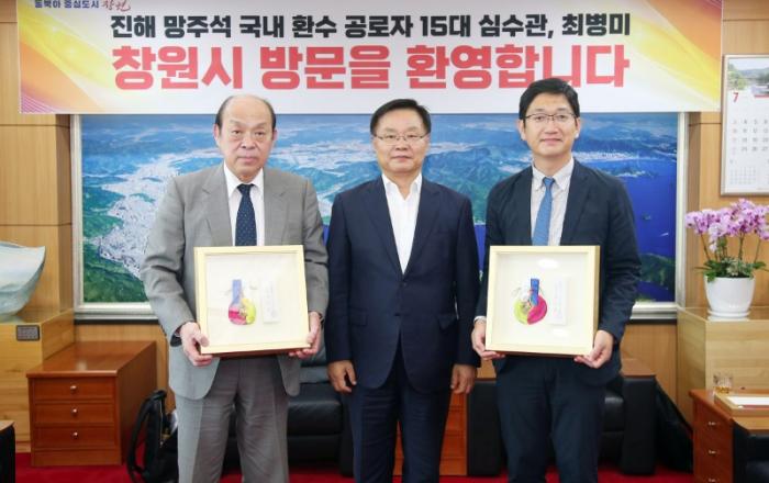 홍남표 창원특례시장, 진해 망주석 환수 공로자에 감사의 뜻 전해15대 심수관·최병미 주일한국문화원 국외문화재 공로자 창원 방문창원특례시(시장 홍남표)는 7일 오후 1시30분 시청 접견실에서 2009년 일본 가고시마 소재 진해 망주석을 환수하기 위해 지원한 대한민\국 명