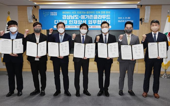 경남도, 메타버스 시대의 인공지능‧클라우드 인재 집중 양성25일 메가존클라우드 등 5개사와 디지털 인재양성 업무협약 체결지역혁신 플랫폼 사업과 연계해 지역 인재 교육과 취업 활성화 경남도는 25일 도청 도정회의실에서 메가존클라우드(대표이사 이주완) 등 협력사*, 울산‧