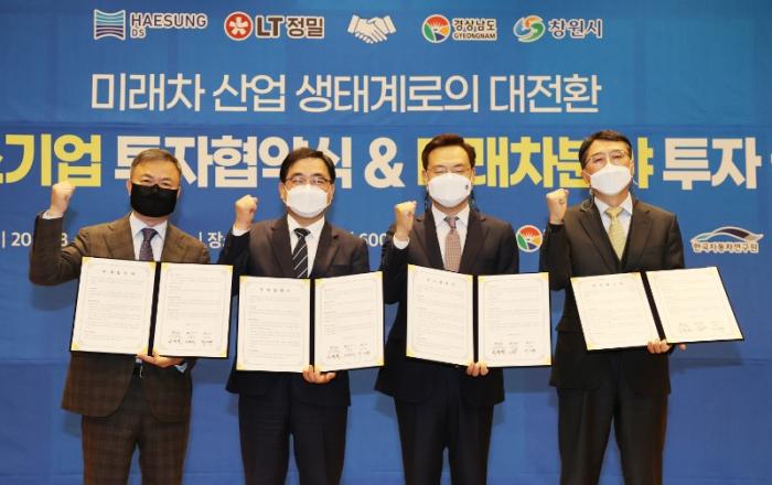 경남도, 첨단산업 강소기업 투자 유치로 미래 산업 힘찬 견인!해성디에스㈜, 엘티정밀㈜과 반도체 및 전기자동차 부품생산 대규모 투자협약 체결4,200억 투자 및 신규 일자리 370명 창출 기대 경남도는 23일 창원컨벤션센터에서 해성디에스㈜, 엘티정밀㈜, 창원시, 한국자동