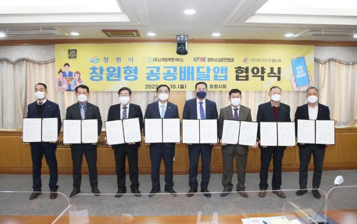 창원시, 창원형 민관협력형 공공배달앱 업무협약 체결㈜스마트마켓서비스, 창원시소상공인연합회 등… 착한 수수료 2%, 상반기 출시창원시(시장 허성무)는 10일 오후 3시 시정회의실에서 소상공인들의 배달앱 중개 수수료 절감을 위해 ㈜스마트마켓서비스와 창원시소상공인연합회, 한