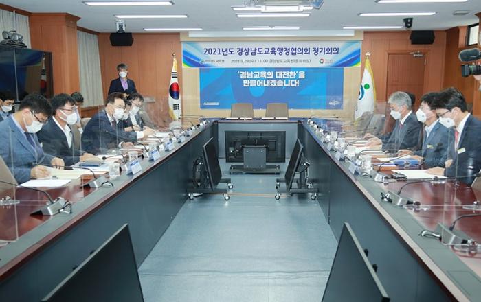 ‘경남의 미래, 아이의 미래’를 위한 경남도-교육청 협력 강화-29일 경남교육청에서 경남도-교육청 교육행정협의회 정기회의 개최-새로운 경남 미래교육을 위한 통합교육 행정체제 강화 등 7개 사항 합의작성2021년 09월 29일 조회25페이스북 트위터 카카오스토리 네이버블
