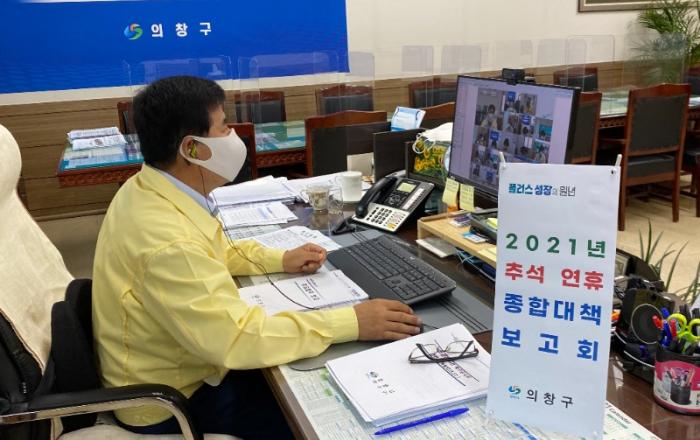 의창구, 추석 연휴 종합대책 추진상황 점검 나서- 4不(불평·불만·불쾌·불안) 없는 편안한 추석 명절 조성에 총력 - 창원시 의창구(구청장 황규종)는 8일, 다가오는 추석 연휴에 대비해 종합대책 추진상황 점검에 나섰다고 밝혔다. 비대면 영상회의로 진행된 이 날 점검