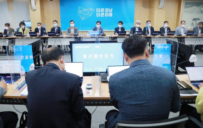 김경수 도지사 “도민 190만 명 안전한 식수원 확보대책 시급” - 9일 , 공공갈등관리 등 도정 현안 논의- “경남도민 식수 3분의 2가 낙동강 물 사용...낙동강 물 문제는 우리 문제”- 변이바이러스 확산 방지 총력, 고위험군 중심 백신접종 인센티브 마련 지시- 정