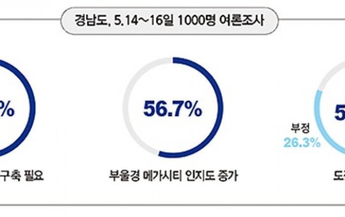 경남 도민 여론조사에서 도정 잘하고 있다 긍정 평가 경남도민 절반 이상이 민선 7기 경남도정에 합격점을 주고 있는 것으로 나타났다.경남도가 지난 5월 14~16일 사흘간 도정 현안에 대한 정례 여론조사를 한 결과 응답자 55.5%가 경남 도정을 긍정 평가했으며, 부정