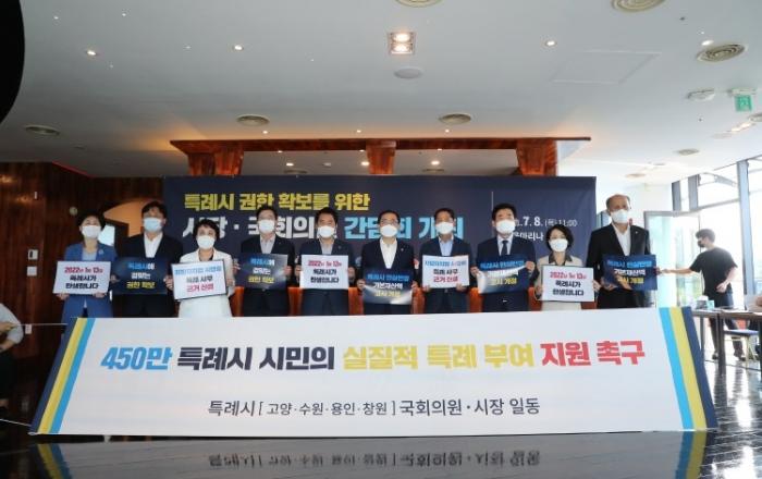 허성무 창원시장, 서울서 특례시 권한 확보 위해 강행군특례시 권한 확보를 위한 시장·국회의원 간담회 및 임시회 열려지방자치법 시행령 대응, 특례시 권한 단기·중장기 이원화 전략, 의원 개별입법 추진성명서 발표 “시민이 직접 체감할 수 있는 행정서비스 제공 위해 권한 부