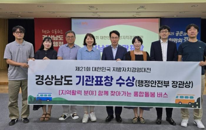 함께 찾아가는 통합돌봄버스, 행정안전부 기관표창 수상 - 제21회 대한민국 지방자치 경영대전에서 우수사례로 선정- 부서·기관 칸막이 허문 협업으로 촘촘한 돌봄 실현 경상남도(도지사 박완수)는 ‘제21회 대한민국 지방자치 경영대전’에서 지역활력 분야 우수상(행정안전부