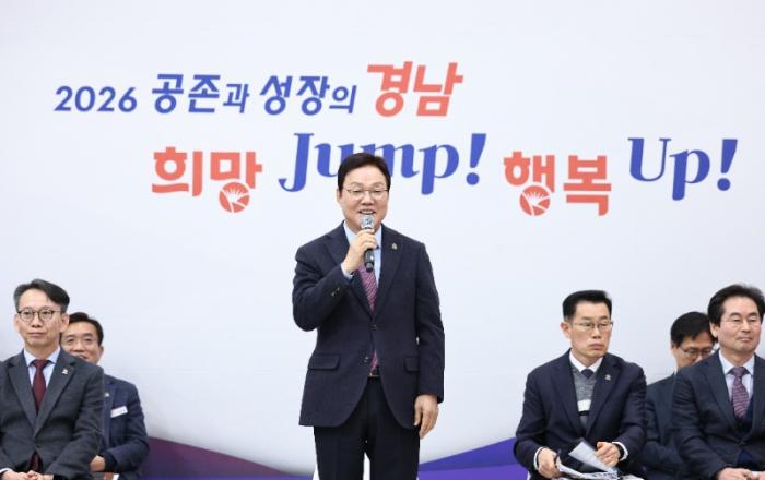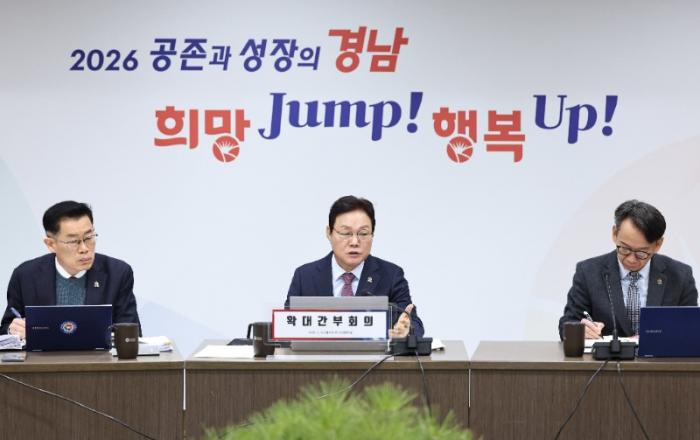 경남도, 새해 첫 간부회의서 도민 체감 확산 강조 - 12일, 도청서 도지사 주재 ‘확대간부회의’ 열려- ‘건설 경기 호조세’ 공공사업 조기 발주 등 민생 경제 활력에 총력- ‘6년 방치’ 부전-마산 복선전철, ‘부분 개통’ 강력 추진 지시- 고독사·치매머니·보이스피싱