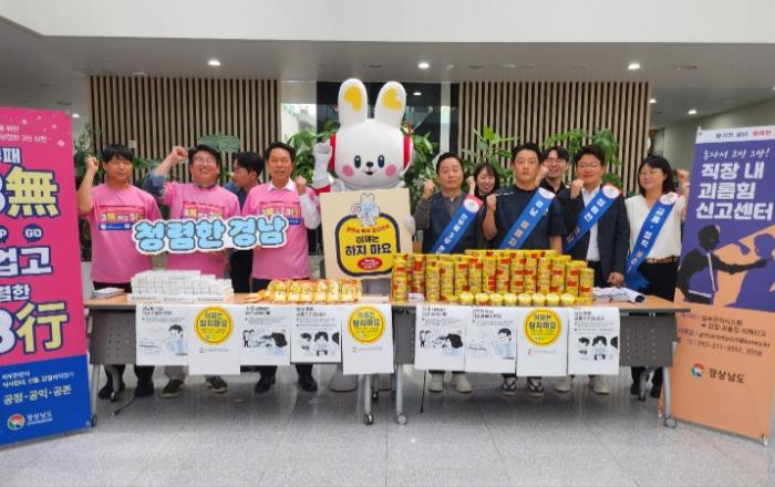 “이제는 하지마요·참지마요”경남도, 청렴 문화 확산 캠페인 열어 - 19일, 서부청사서 ‘멘토 청렴파수꾼 청담회’‧‘청렴문화 확산 캠페인’ 개최- 고위직 청렴온도 진단부터 세대별 인식 차이 공유까지- 3무·3행 실천 메시지와 이색 홍보물로 공감대 확산 경상남도(도지사