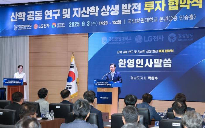 경남도․국립창원대․엘지전자, 지산학 상생 협력 맞손경남도, 든든한 지원자로 제도‧정책 뒷받침 - 3일, 경남도․국립창원대․엘지전자 ‘지산학 상생발전 업무협약’ 체결- “경남형 산학협력 새 모델 출범” 지속가능한 협력 모델로 확장- 엘지전자, 국립창원대 내 4천평 규모