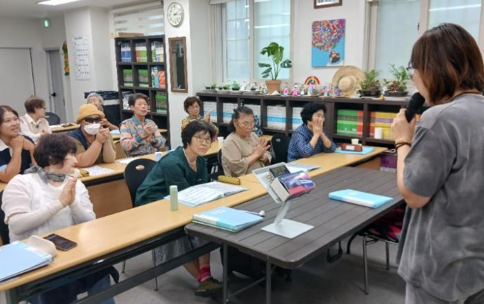 경남조은장애인평생학교 학생들은 1교시 국어 수업 후 2교시 노래교실 시간에 나훈아 “머나먼 고향”을 불러보고 배워봅니다. 추석이 다가오기에 고향을 생각하며 불러보는 노래입니다. 한곡씩 좋아하는 노래를 불러보고 즐거운 시간을 가져보았습니다. 항상 노래교실시간이면 행복해하