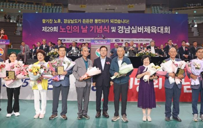“여러분이 경남의 중심이자 지도자”경남도, 노인의 날 기념식서 존경 전해 - 3일, 창원실내체육관서 ‘제29회 노인의 날 기념식’ 개최- 노인복지 증진 기여한 모범 어르신 18명에 도지사 표창 수여- 실버가요제·체조·한궁... 함께 즐기는 어울림 한마당- 시니어 생산품