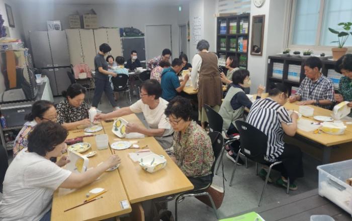 경남조은장애인평생학교 학생들은 1교시 국어 수업 후, 2교시 핸드페인팅 시간에 노오란 레몬 샐러드볼을 만들어보았습니다. 샐러드볼에 레몬과 잎을 본뜬 종이를 대고 따라서 그려넣어주고 그 위에 색을 입혀주었더니 너무나 상큼한 샐러드볼이 만들어 지고 있습니다. 레몬색상을 노